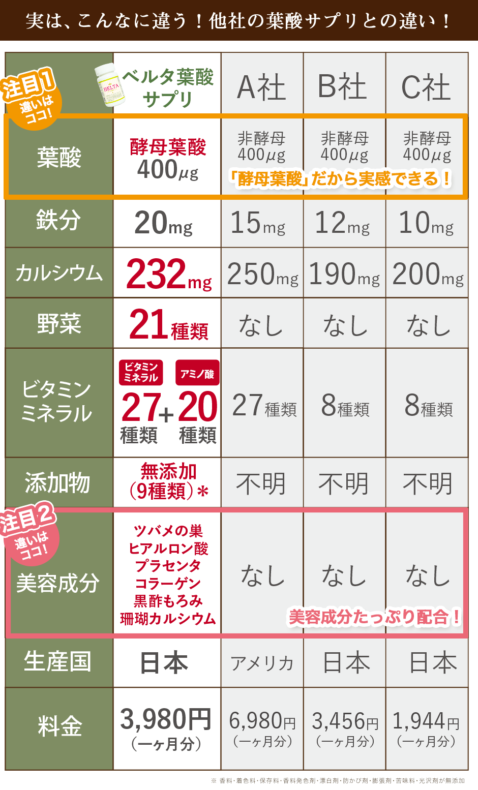 163 葉酸サプリはどれを選んでも一緒。 そう思う方もかなり多いです。 しかし、そんな方にこそおすすめしたい葉酸サプリがあります。 それは「ベルタ葉酸サプリ」です。 どれを選んでも一緒だと思うからこそ、総合力No.1の葉酸サプリを選びましょう。 ベルタ葉酸サプリを選んでおけば、間違いありません。 ベルタ葉酸サプリ. 公式からの購入がお得! →ベルタ葉酸サプリ. 目次 [非表示]. 1 ベルタ葉酸サプリの魅力. 1.1 日々バージョンアップ; 1.2 女性に不足しやすい成分をバランスよく配合; 1.3 栄養機能食品; 1.4 ... 335